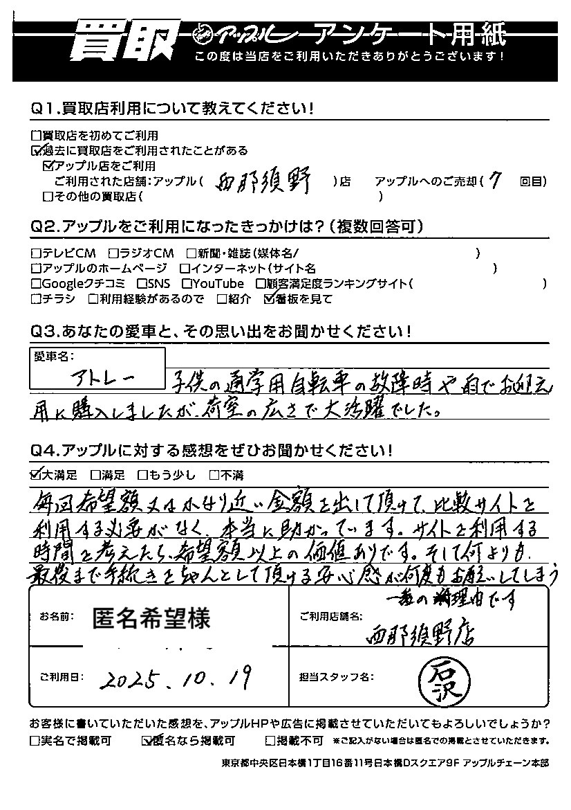 匿名希望様 車名:ダイハツ アトレー