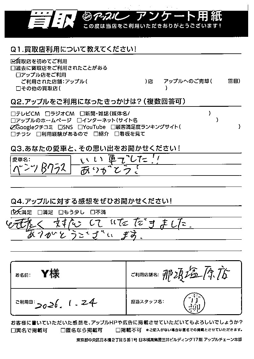 Y様 車名:メルセデス・ベンツ Bクラス