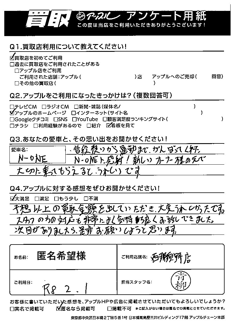 匿名希望様 車名:ホンダ N-ONE