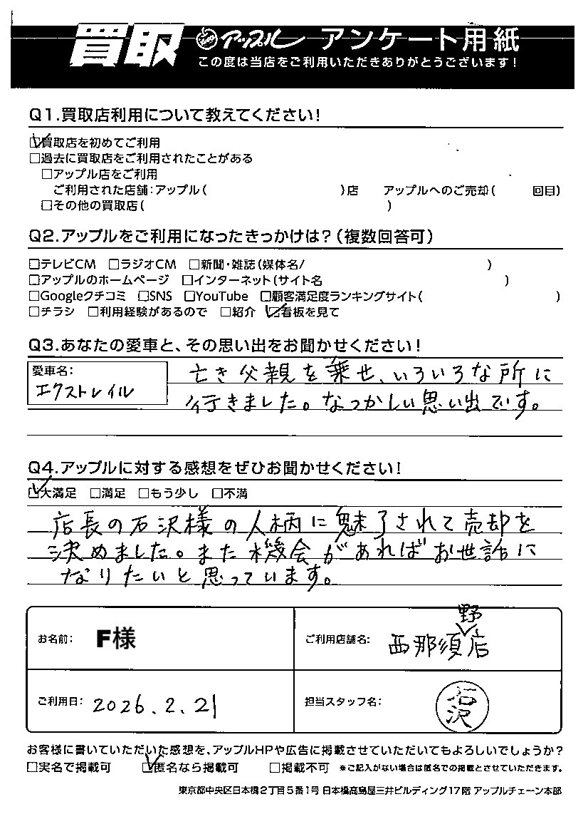 F様 車名:日産 エクストレイル
