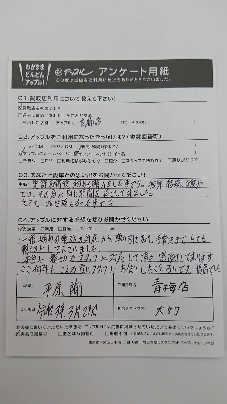 免許取得後、初めて購入をした車です。独身、結婚、子供ができ、その度に同じ時間を過ごして来ました。とても、お世話になった車です。