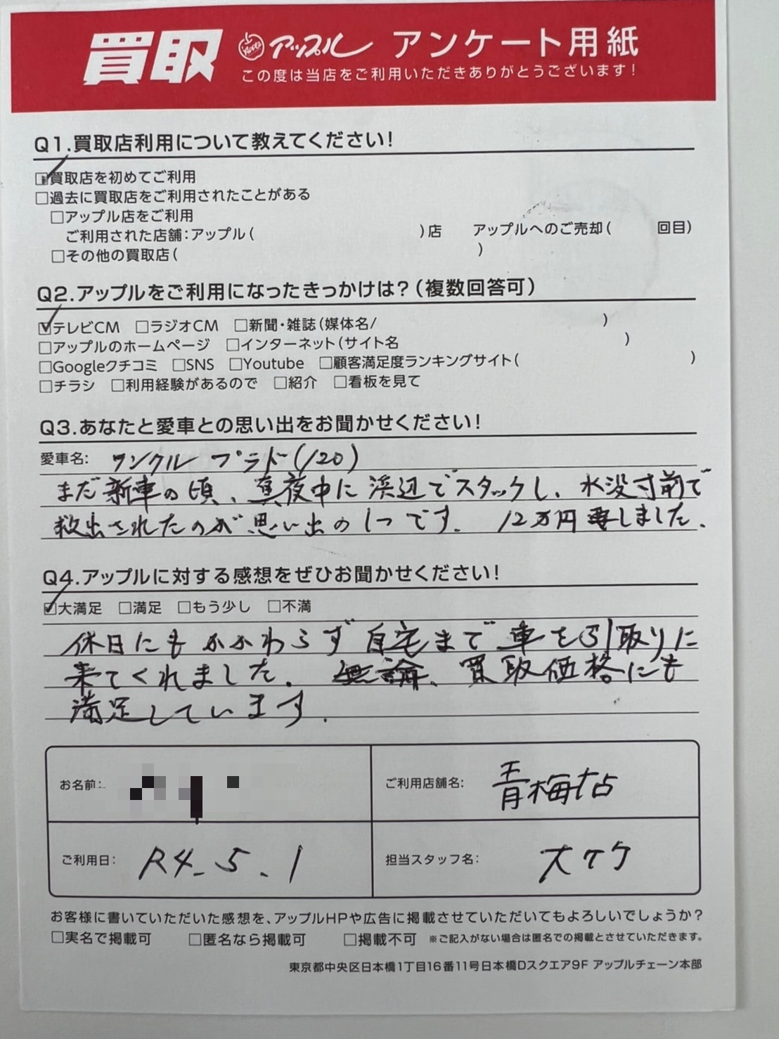 匿名希望様 車名:トヨタ ランドクルーザープラド