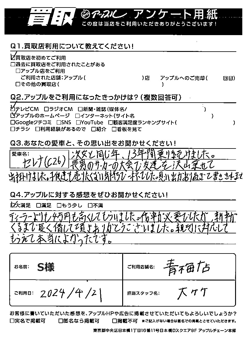 S様 車名:日産 セレナ