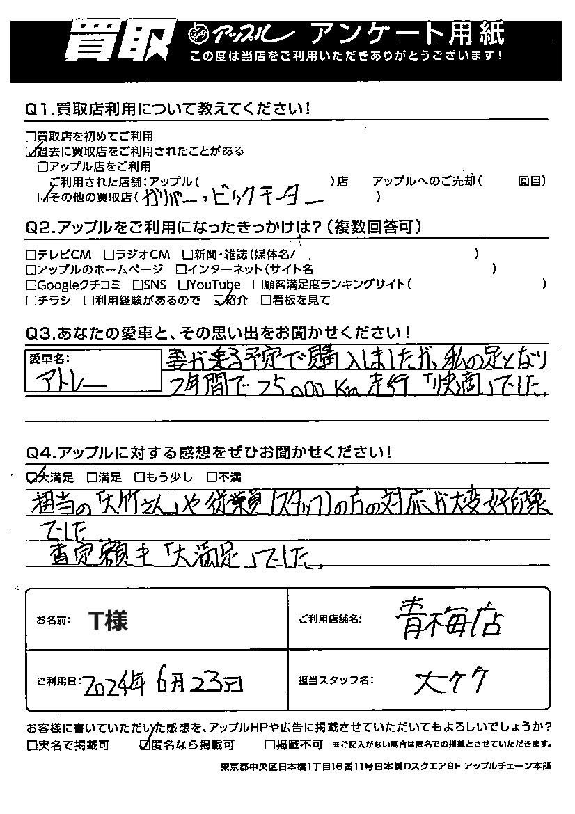 T様 車名:ダイハツ アトレー