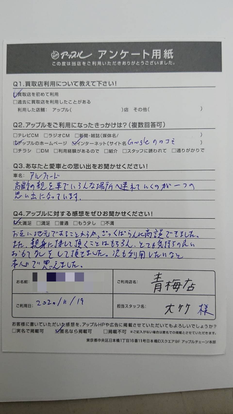 匿名希望様 車名:トヨタ アルファード(H27年1月~のHYBRID含む)