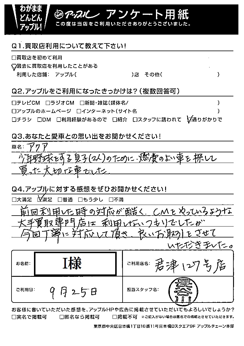 今回丁寧に対応して頂き、良いお取引をさせていただきました。