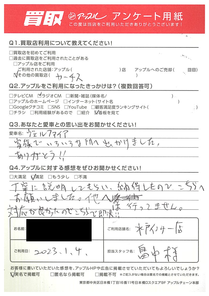 水戸市 T様 車名:トヨタ ヴェルファイア(H27年1月~のHYBRID含む)