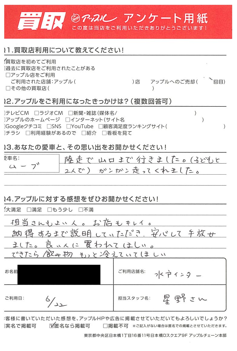 水戸市 O様 車名:ダイハツ ムーヴ