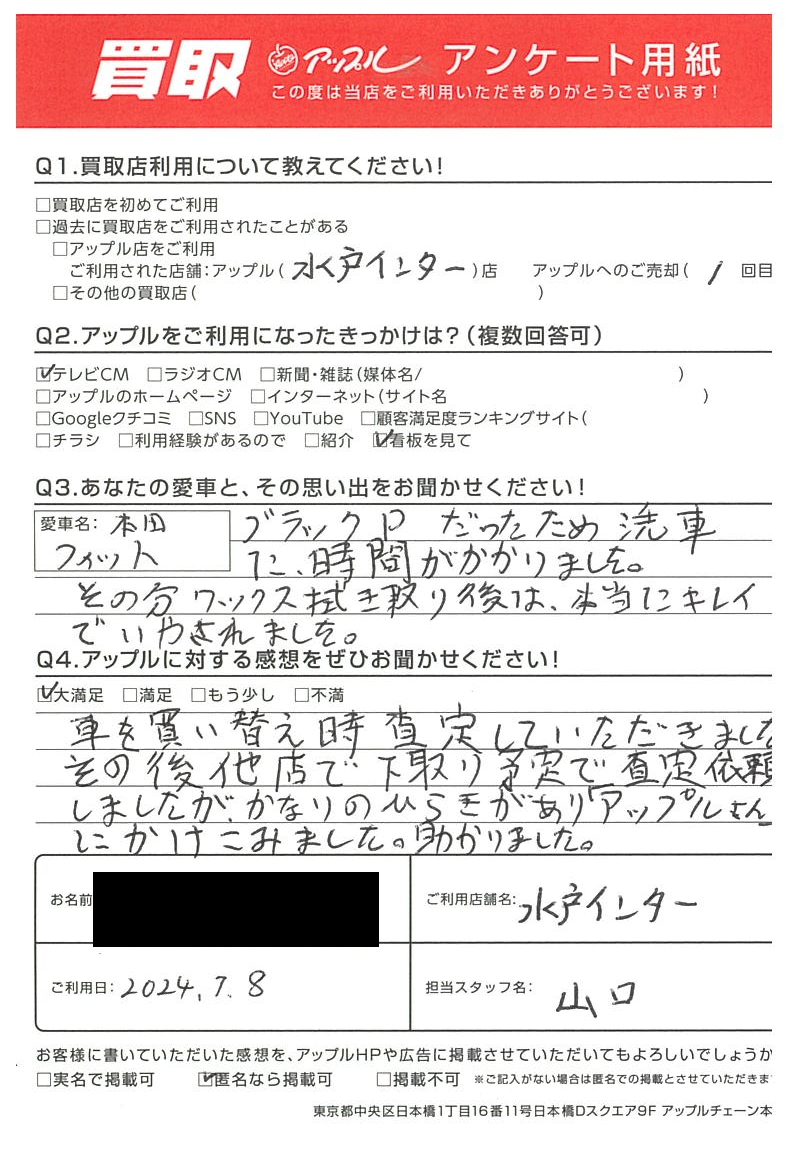 その後他店で下取り予定で査定依頼しましたが、かなりのひらきがあり『アップル』さんにかけこみました。助かりました。
