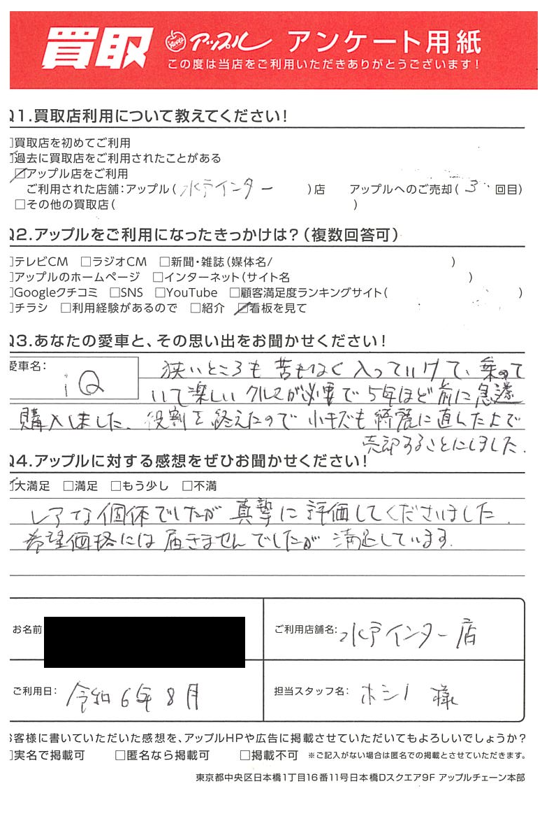 水戸市 H様 車名:トヨタ iQ