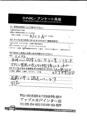 お車のご相談・ 査定だけでもOK! カンタン 入力 30秒 アップルがブランド買取始めました! お電話でも受付中! 受付時間10:00 ~ 18:30 0120-366-310 お車のご相談・ 査定だけでもOK! カンタン 入力 30秒 アップルがブランド買取始めました! お電話でも受付中! 受付時間10:00 ~ 18:30 0120-366-310 アップルがブランド買取始めました! お電話でも受付中! 受付時間10:00 ~ 18:30 0120-366-310 店舗情報 在庫車 スタッフ紹介 ブログ お客様の声 キャンペーン お得 無料査定 click お客様の声 ご記入日: 2018/10/23 I様 Q.あなたと愛車との思い出をお聞かせください! 故障らしい故障もなく今まで乗ってきました。ボディの塗装が気になり、手放す事としましたが、それが無ければまだまだ乗りました。Q.アップルに対する感想をぜひお聞かせください! 対応が早く満足しています。担当スタッフ:黒澤 前へ 次へ お客様の声一覧を見る