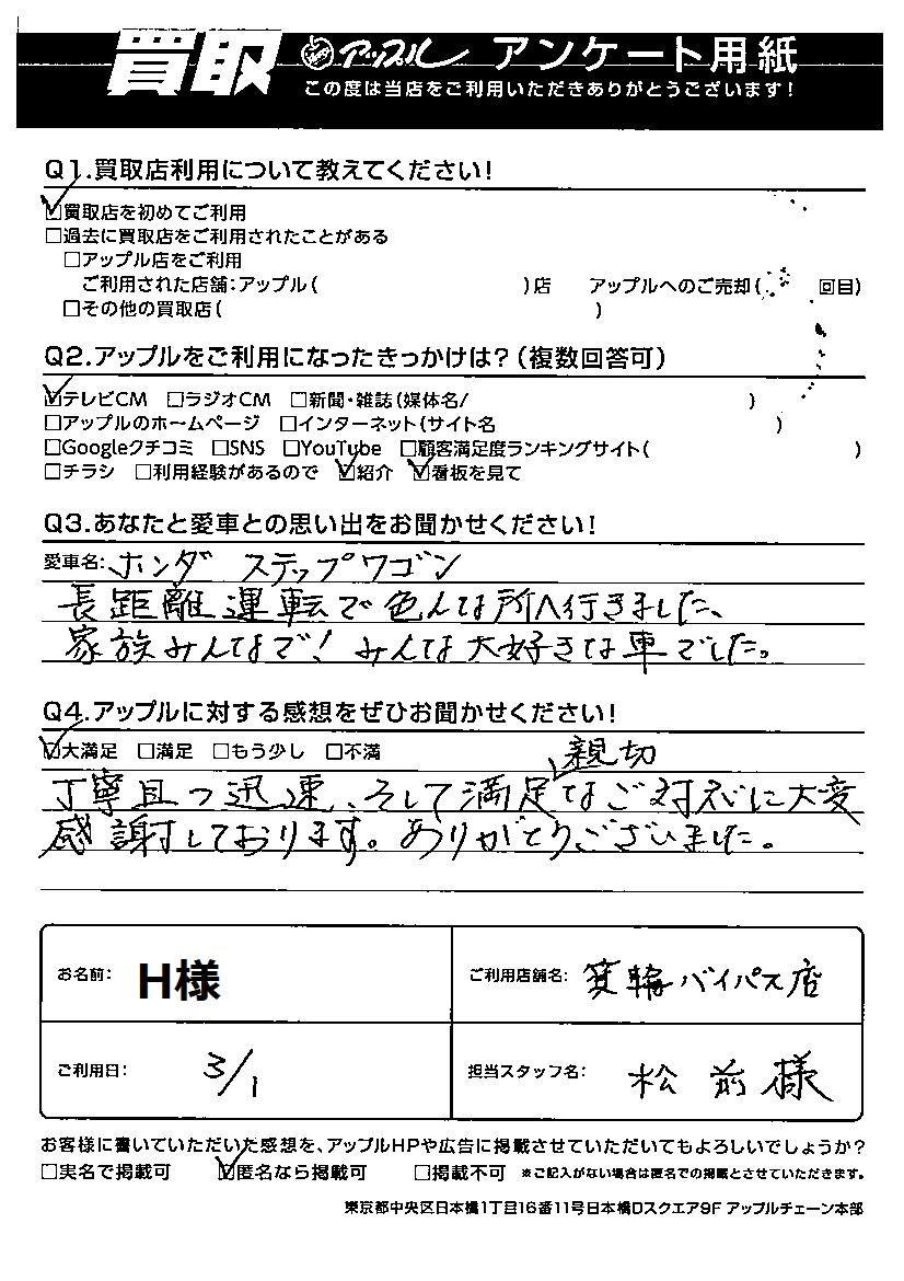 H様 車名:ホンダ ステップワゴン