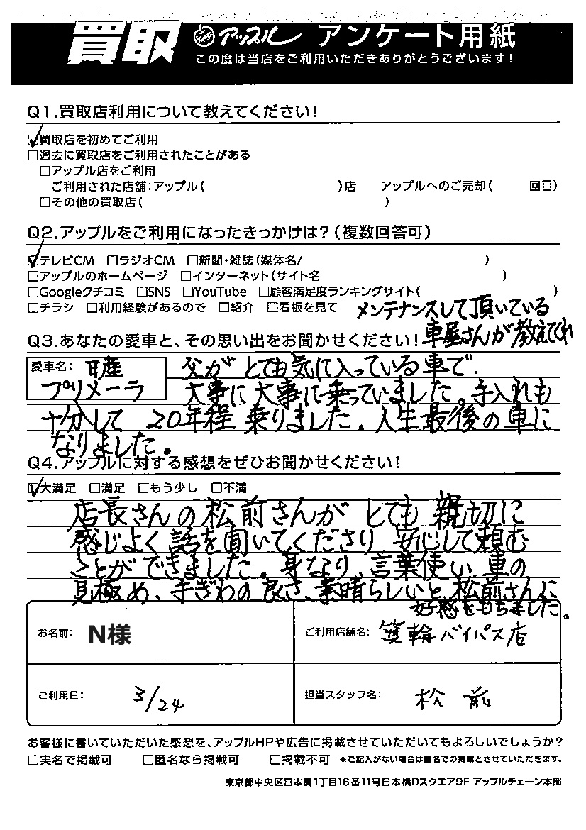 身なり、言葉遣い、車の見極め、手際の良さ。素晴らしいと松前さんに