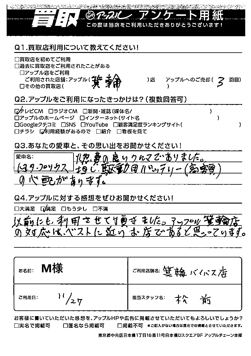 M様 車名:トヨタ プリウス(2023年3月~のPHVを含む)