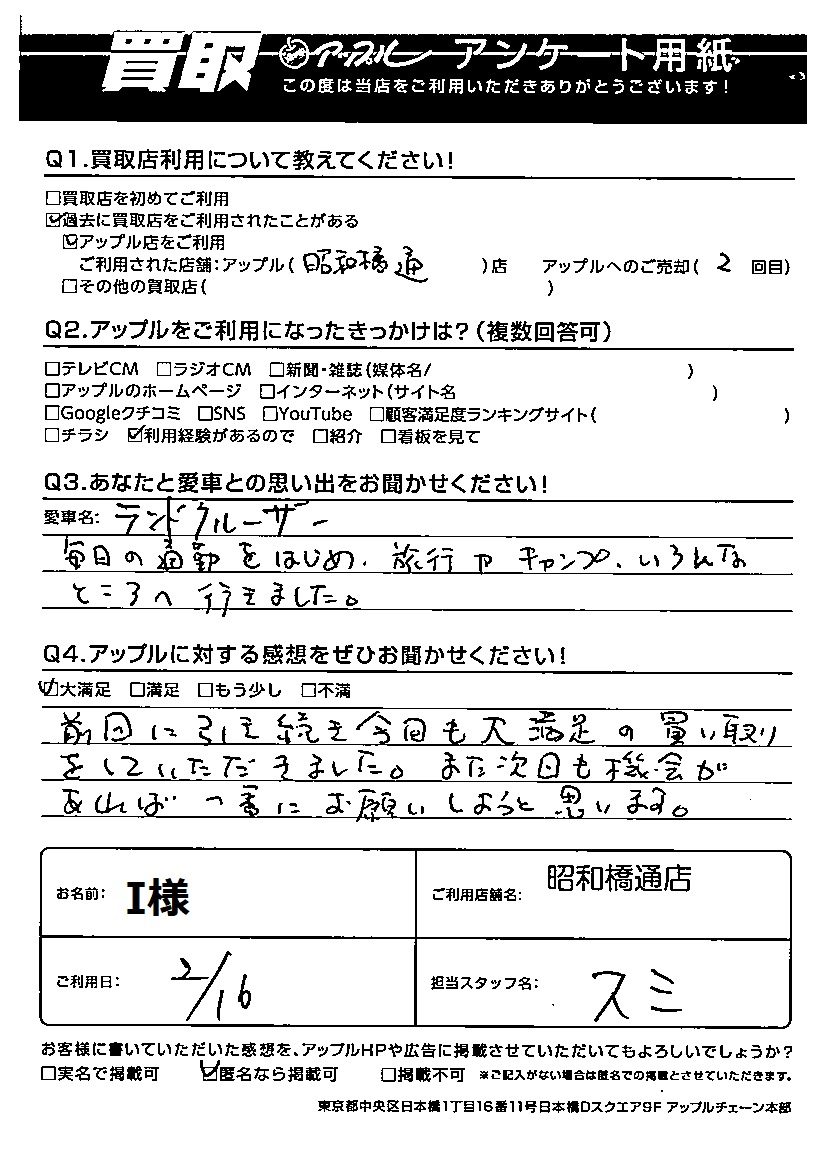 前回に引き続き今回も大満足の買い取りをしていただきました。
