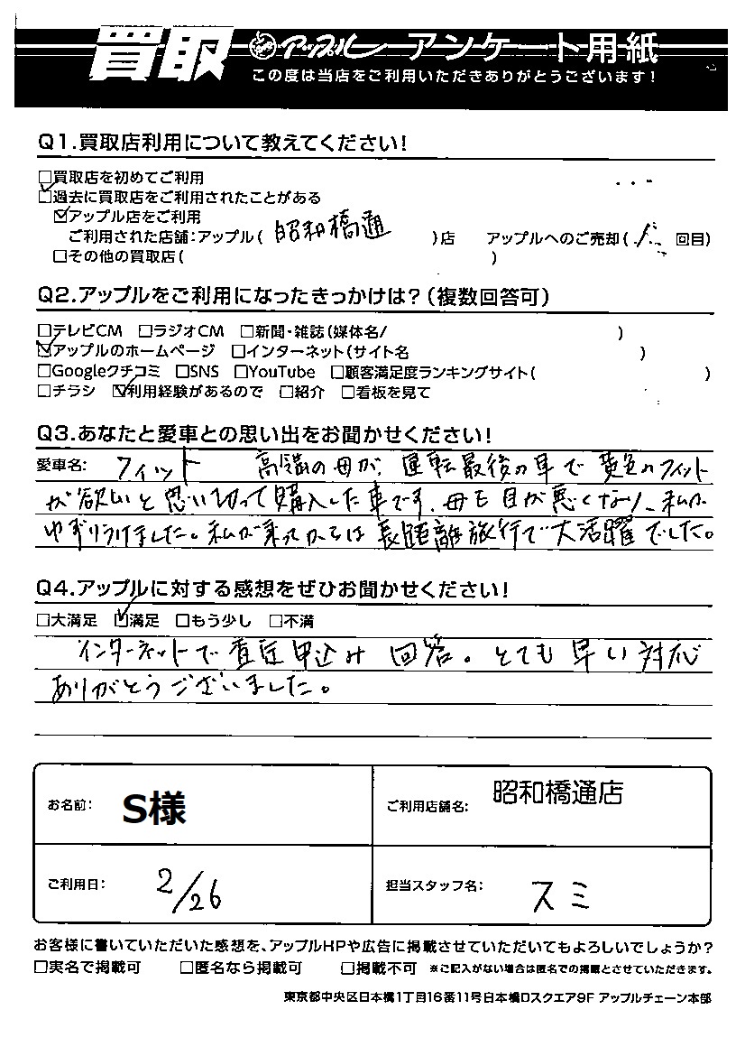 S様 車名:ホンダ フィット(H25年9月以降のハイブリッド含む)