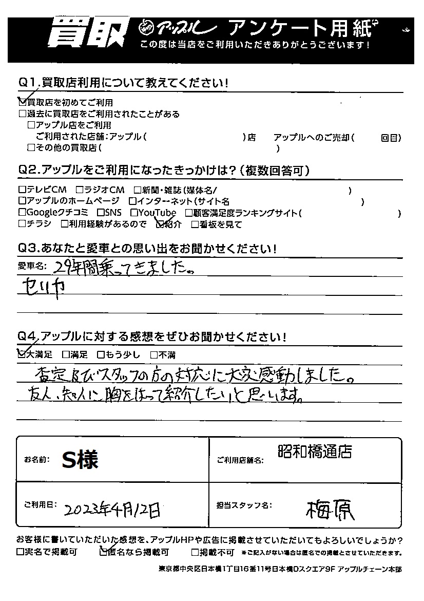 ご利用日:2023年4月12日 担当者:梅原
