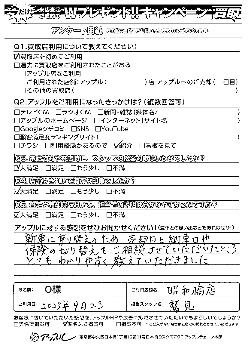 ご利用日:2023年9月23日 担当:鷲見