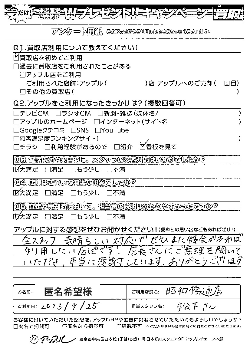 ご利用日:2023年9月25日 担当:松下