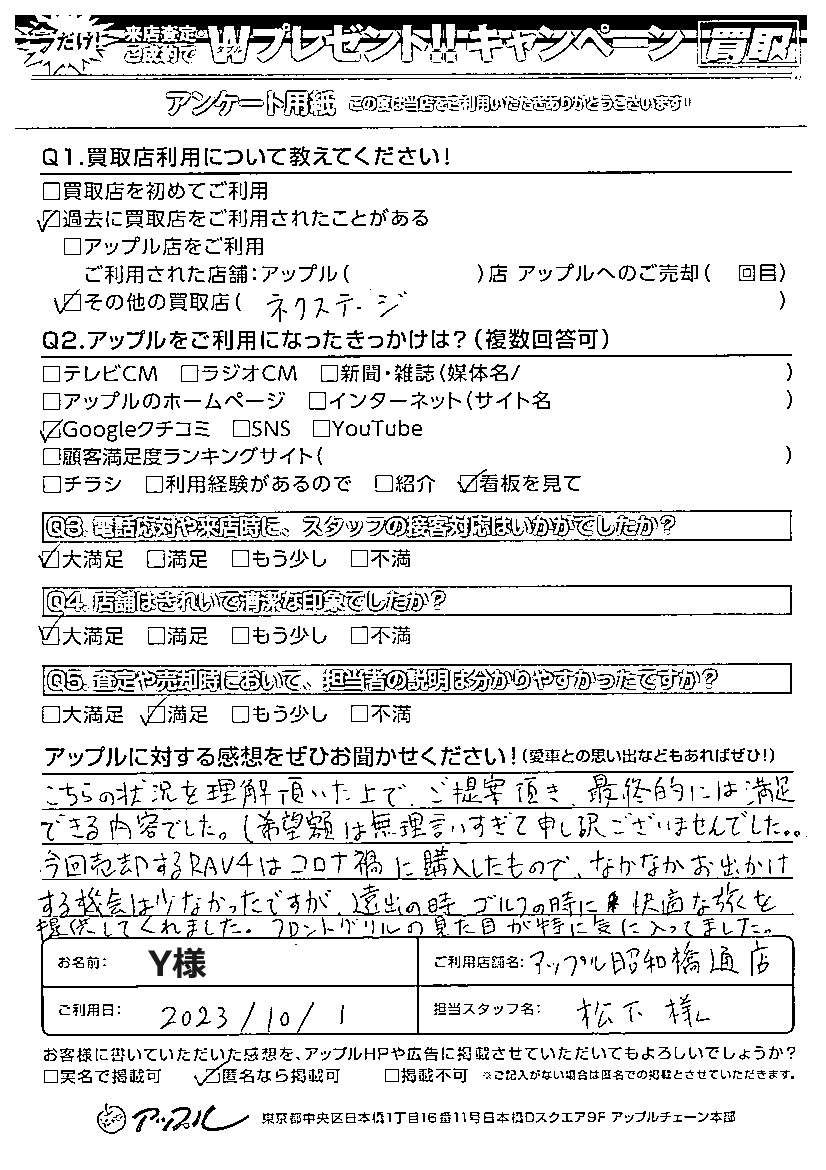 今回売却するRAV4はコロナ禍に購入したもので、なかなかお出かけ
