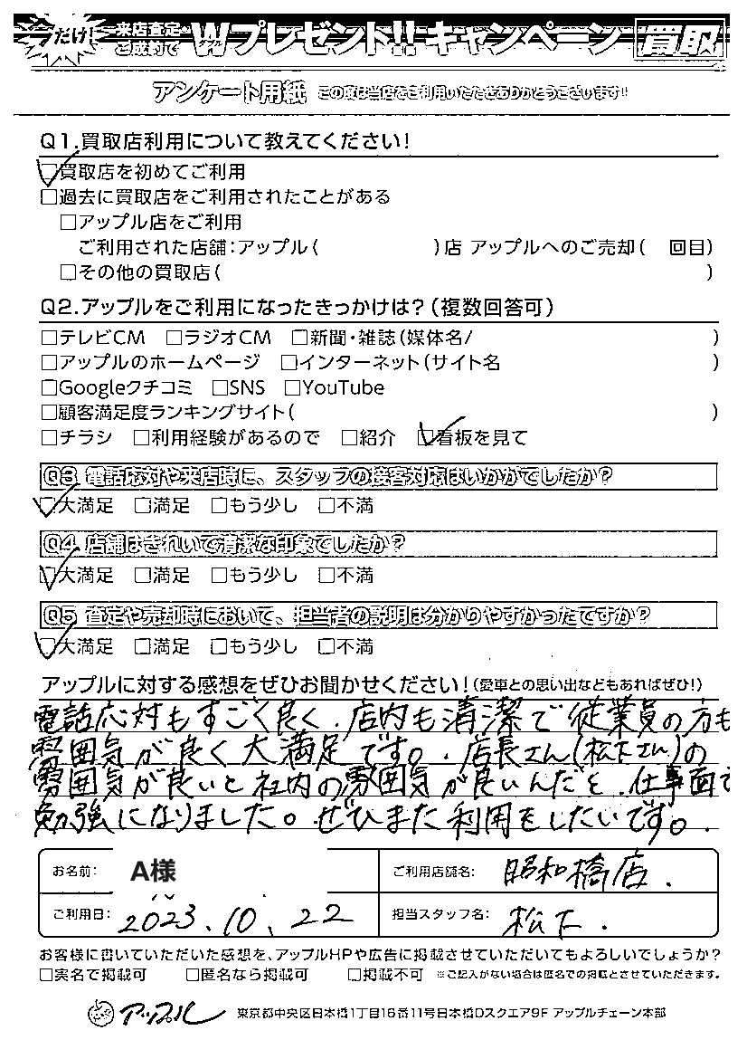 雰囲気が良く大満足です。店長さん(松下さん)の