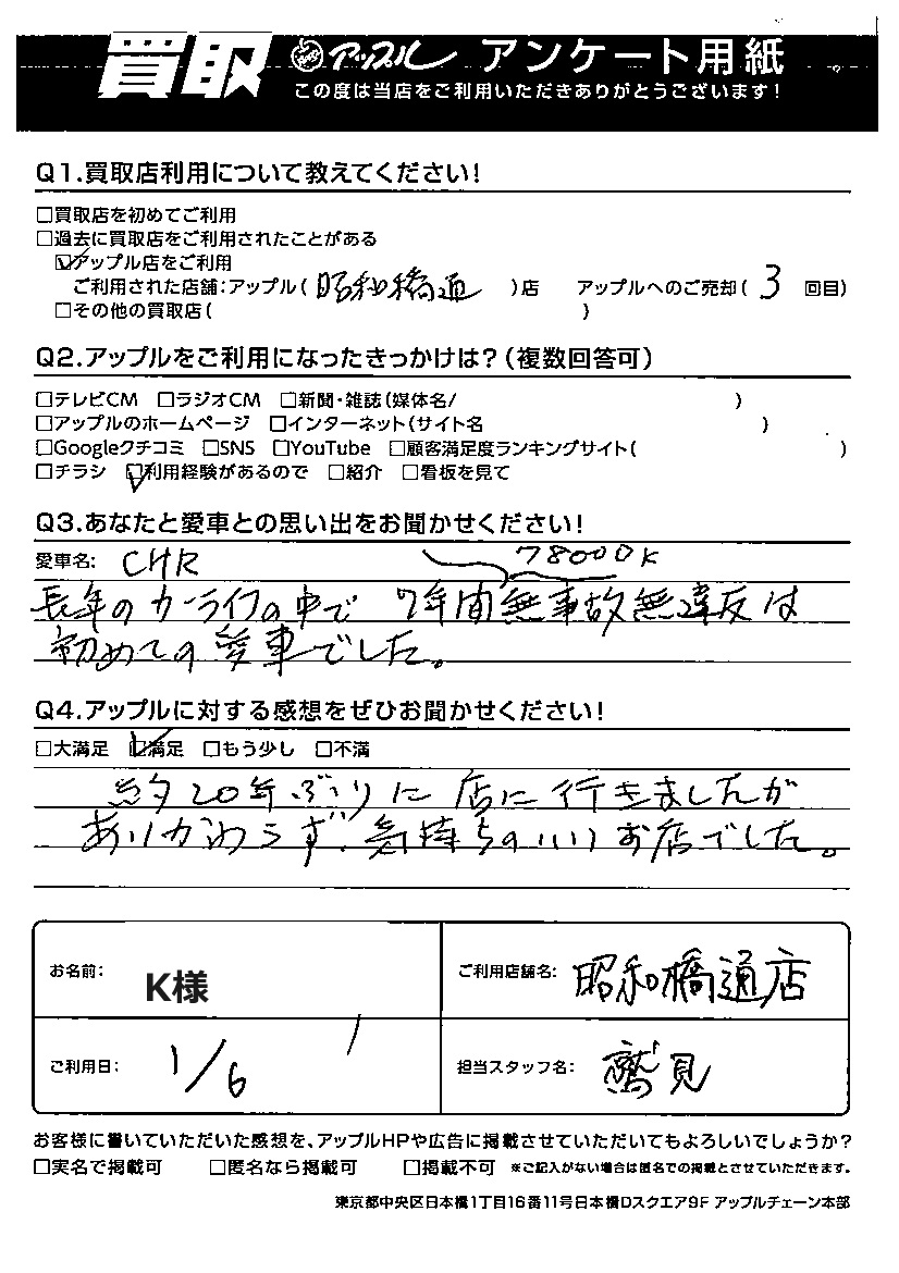 長年のカーライフの中で、7年間78000㎞無事故無違反は