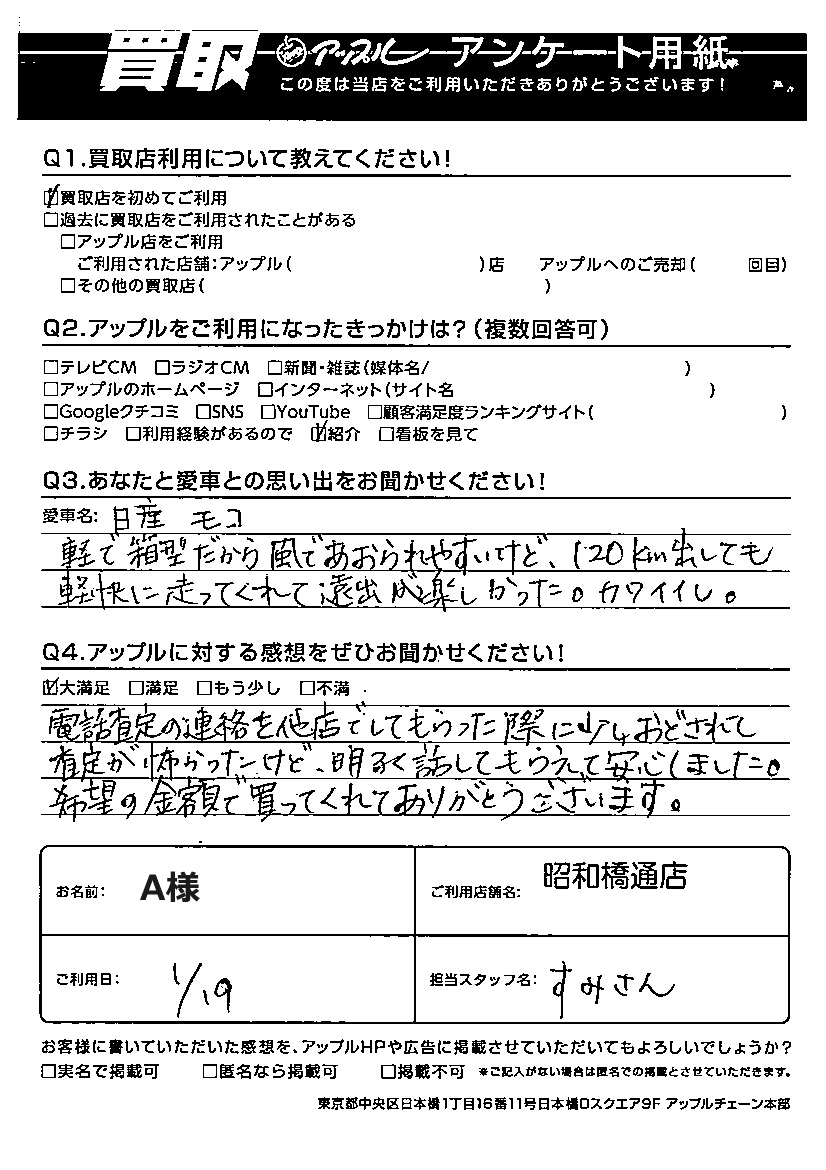 A様 車名:日産 モコ