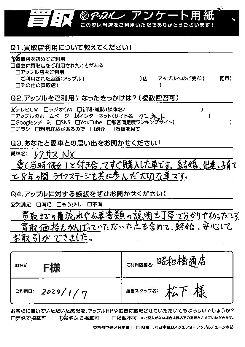 買取までの流れや必要書類の説明も丁寧で分かりやすかったです。