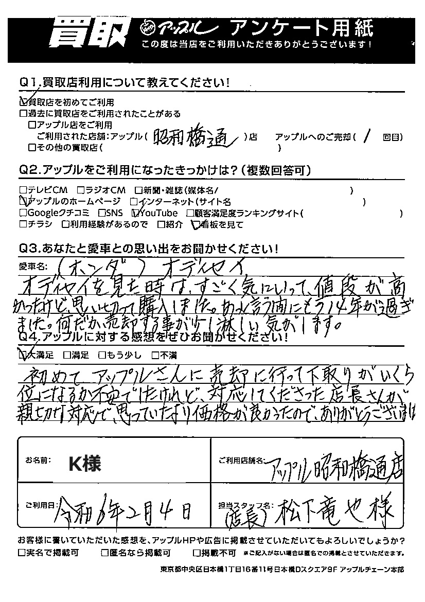 親切な対応で思っていたより価格が良かったので、ありがとうございました。