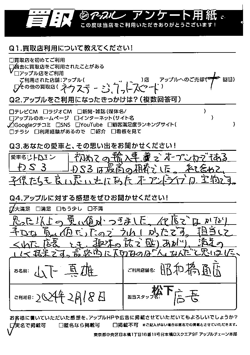 山下 真雄様 車名:シトロエン DS3