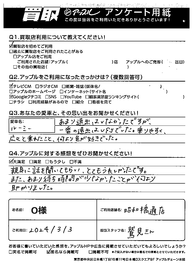 ご利用日:2024年3月3日 担当:鷲見