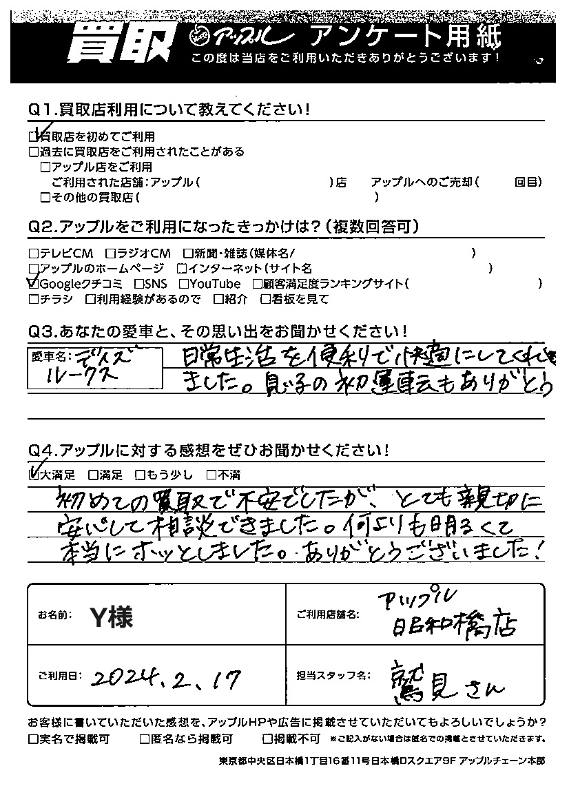 ご利用日:2024年2月17日 担当:鷲見