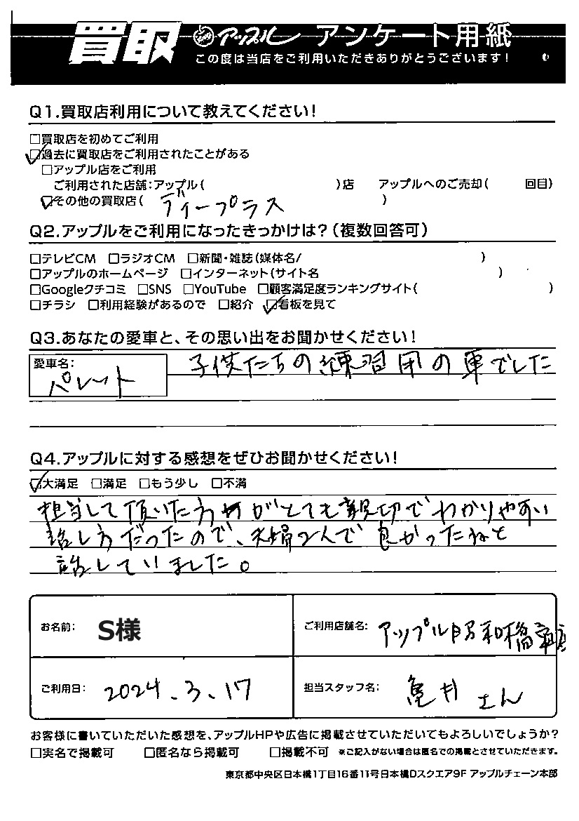 S様 車名:スズキ パレット