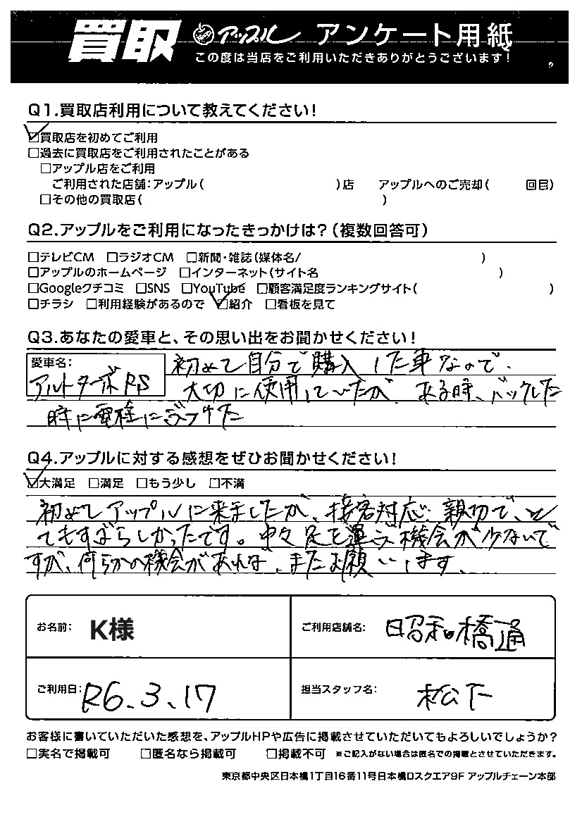 ご利用日:R6年3月17日 担当:松下