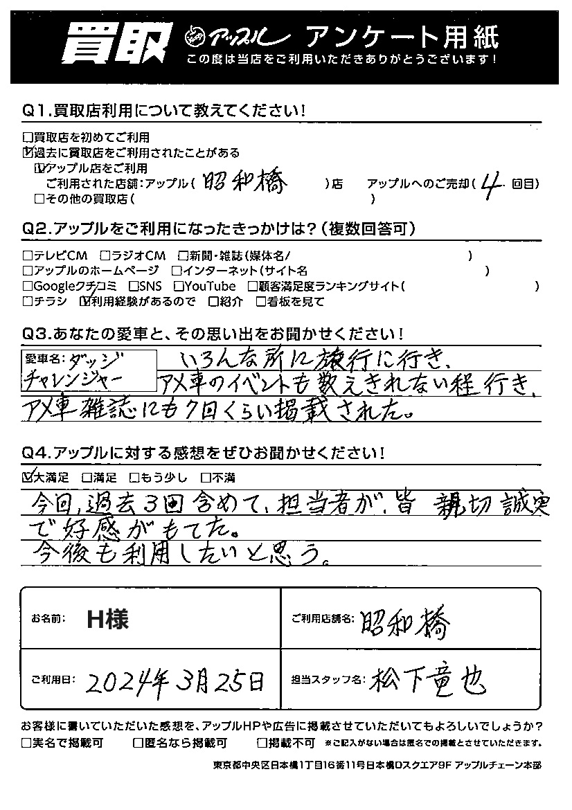 H様 車名:ダッジ チャレンジャー