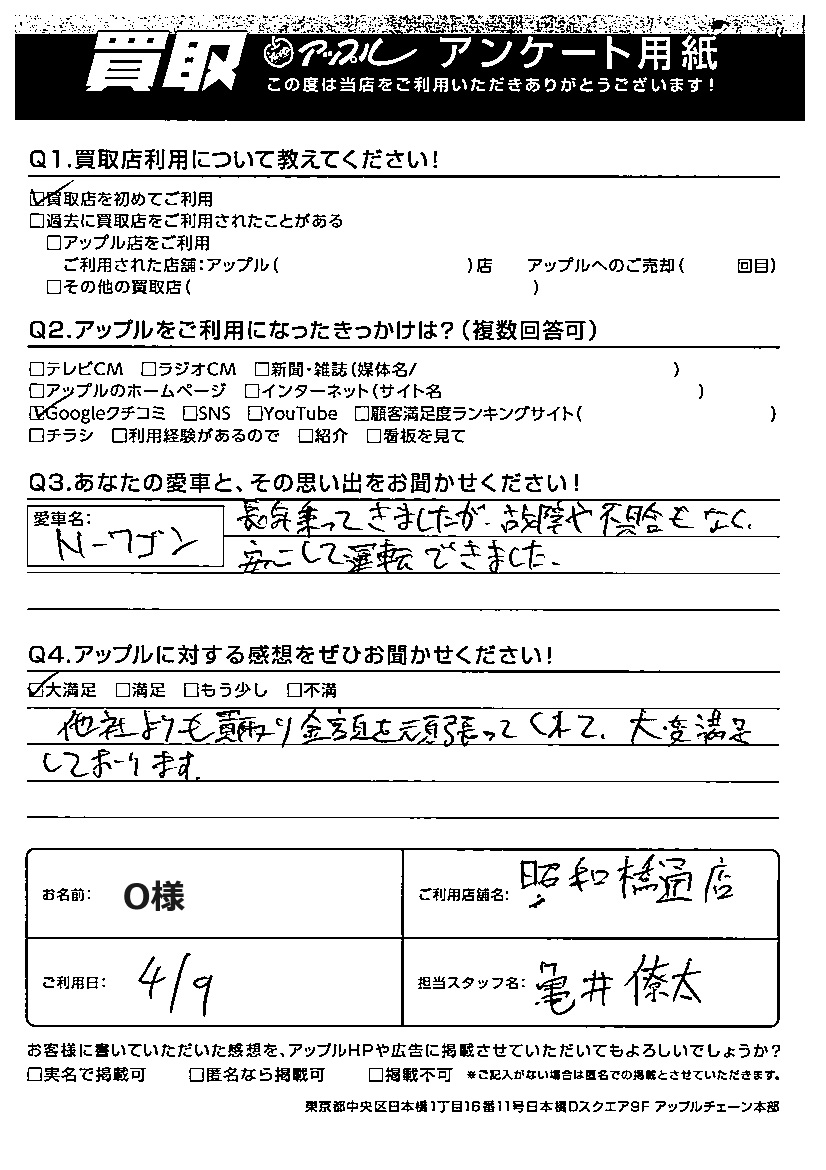 他社よりも買取り金額を頑張ってくれて、大変満足