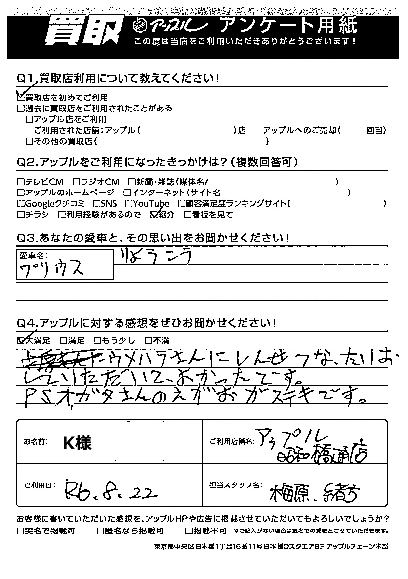 ご利用日:2024/08/22 K様