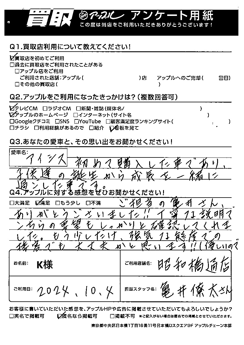 ご利用日:2024/10/04 K様