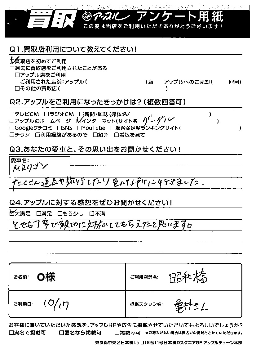 A.愛車名:MRワゴン たくさん遠出や旅行をしたり、色んなところに行きました。