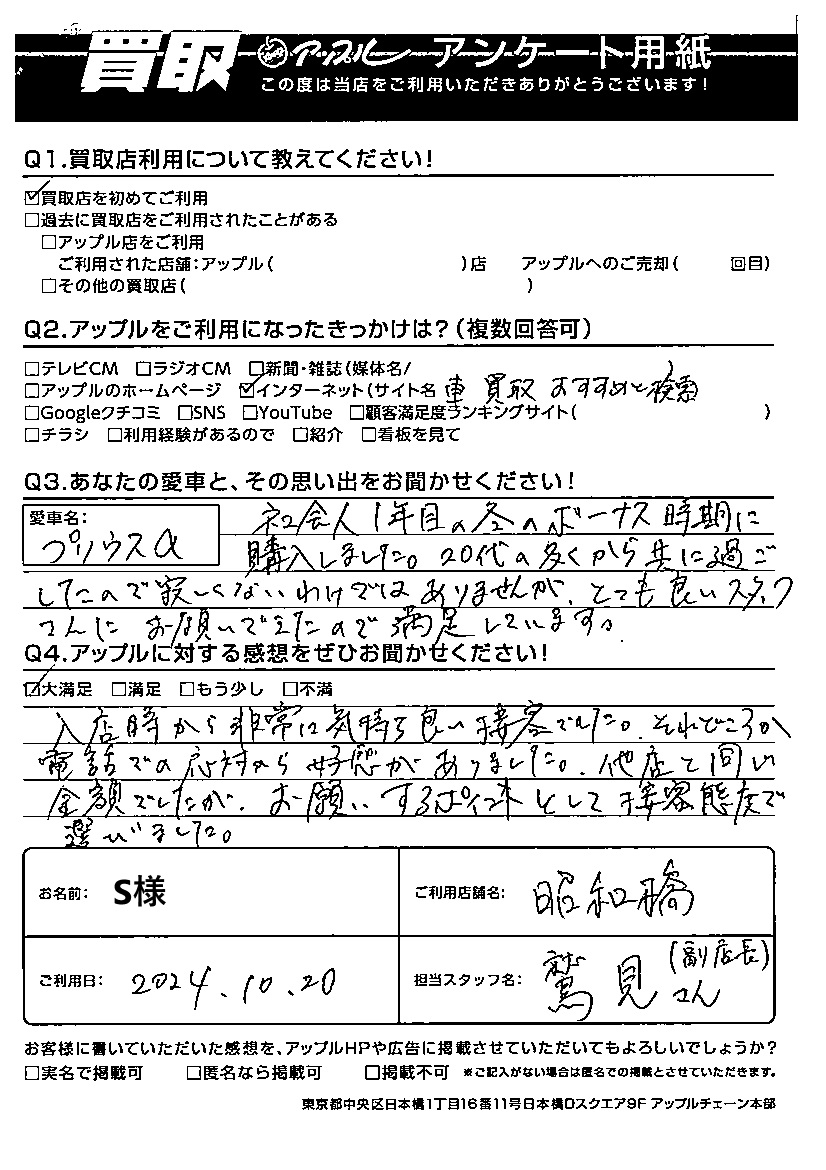 ご利用日:2024/10/20 S 様