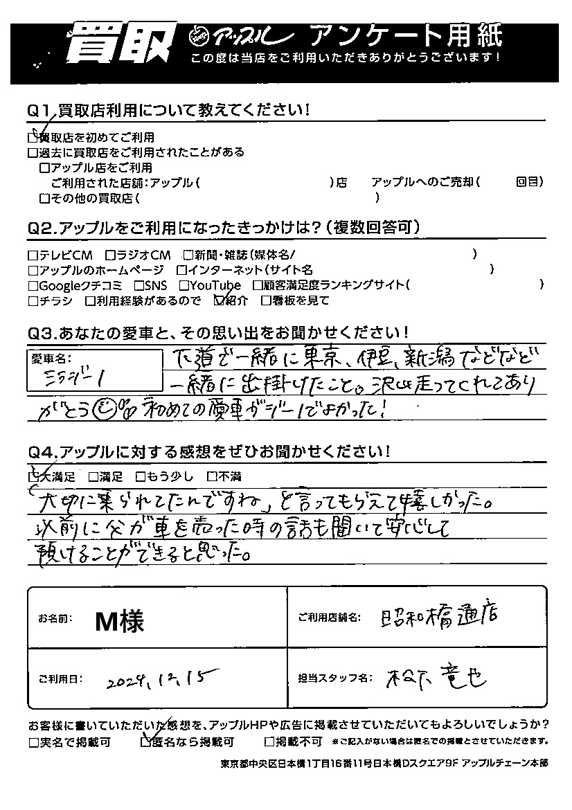 ご利用日:2024/12/15 M 様