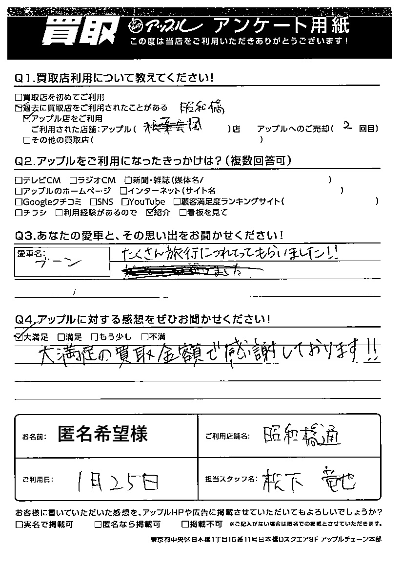 ご利用日:2025/01/25 匿名希望 様