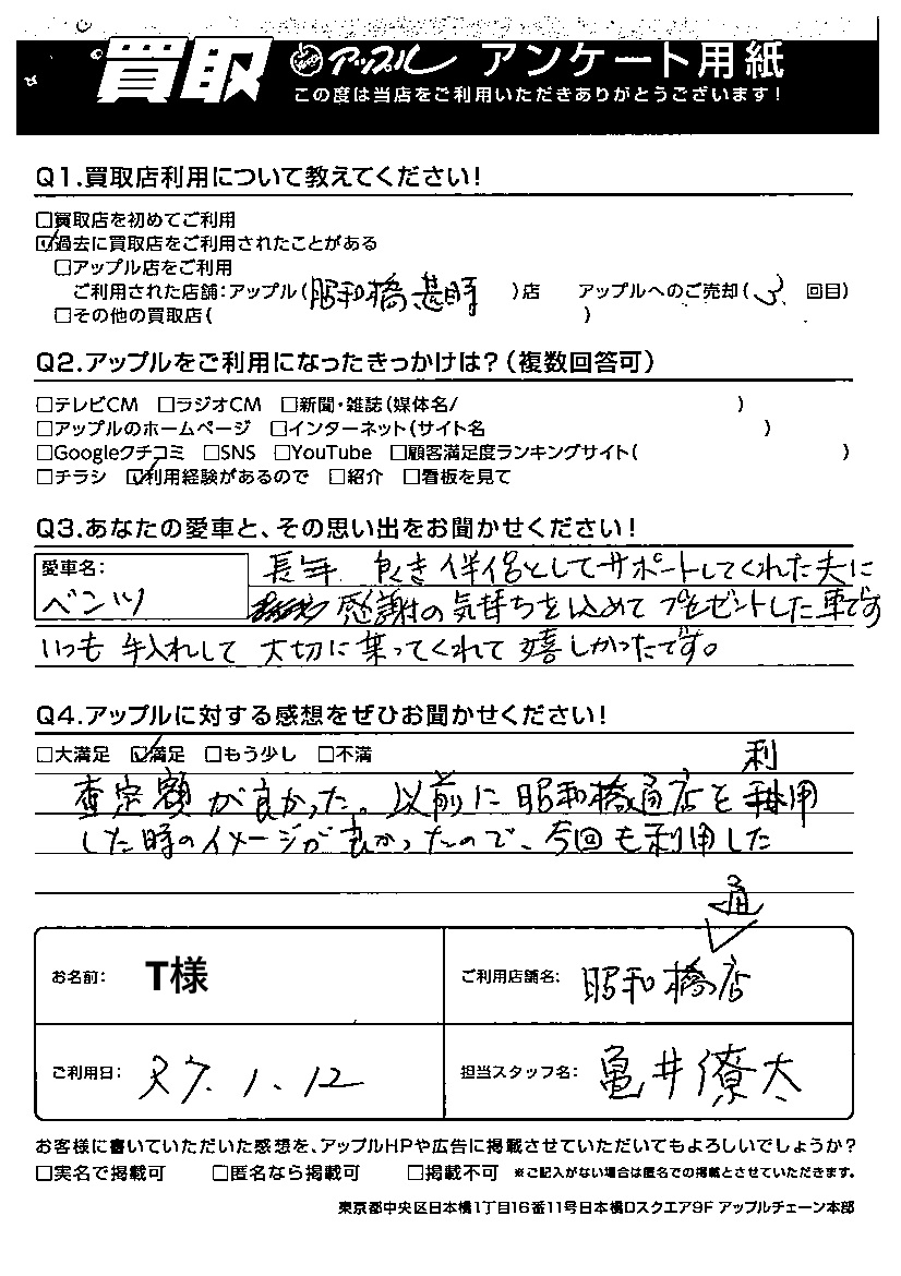 査定額が良かった。以前に昭和橋通店を利用した時のイメージが良かったので、今回も利用した。