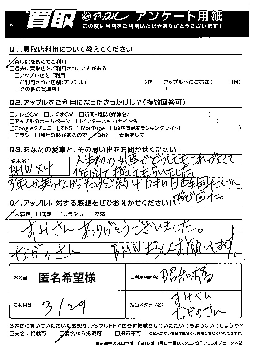 匿名希望様 車名:BMW X4