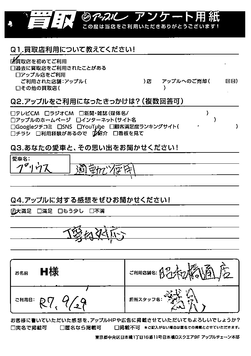 ご利用日:2025/09/29 H 様