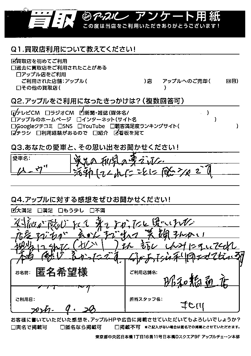 ご利用日:2025/09/28 匿名希望 様