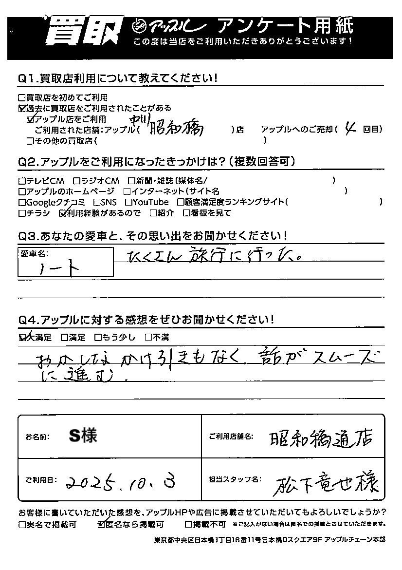 ご利用日:2025/10/03 S 様