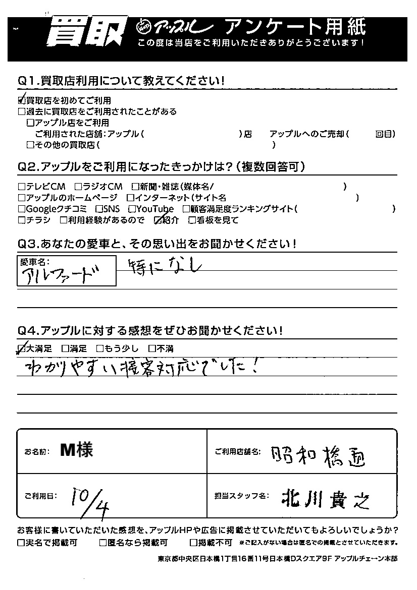 ご利用日:2025/10/04 M 様