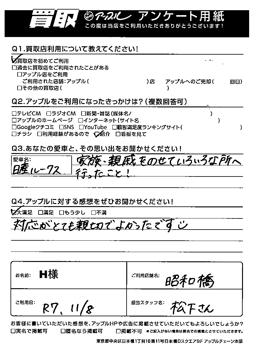 ご利用日:2025/11/08 H 様