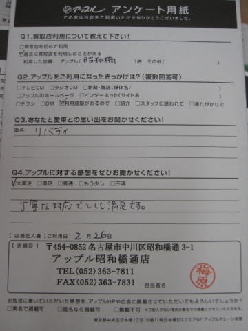 お車のご相談・ 査定だけでもOK! カンタン 入力 30秒 アップルがブランド買取始めました! お電話でも受付中! 受付時間10:00 ~ 19:00 052-363-7811 お車のご相談・ 査定だけでもOK! カンタン 入力 30秒 アップルがブランド買取始めました! お電話でも受付中! 受付時間10:00 ~ 19:00 052-363-7811 アップルがブランド買取始めました! お電話でも受付中! 受付時間10:00 ~ 19:00 052-363-7811 店舗情報 在庫車 スタッフ紹介 ブログ お客様の声 キャンペーン 無料査定 click お客様の声 ご記入日: 2017/06/06 匿名希望リバティ様 丁寧な対応でとても満足です。 前へ 次へ お客様の声一覧を見る